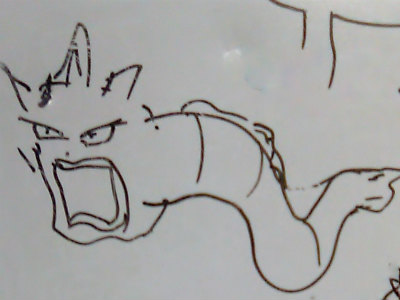 そこで、OUACのガレージにあるホワイトボードがポケモン図鑑と化しているので「ポケモン分かるかな?クイズ」をしようと思いますw