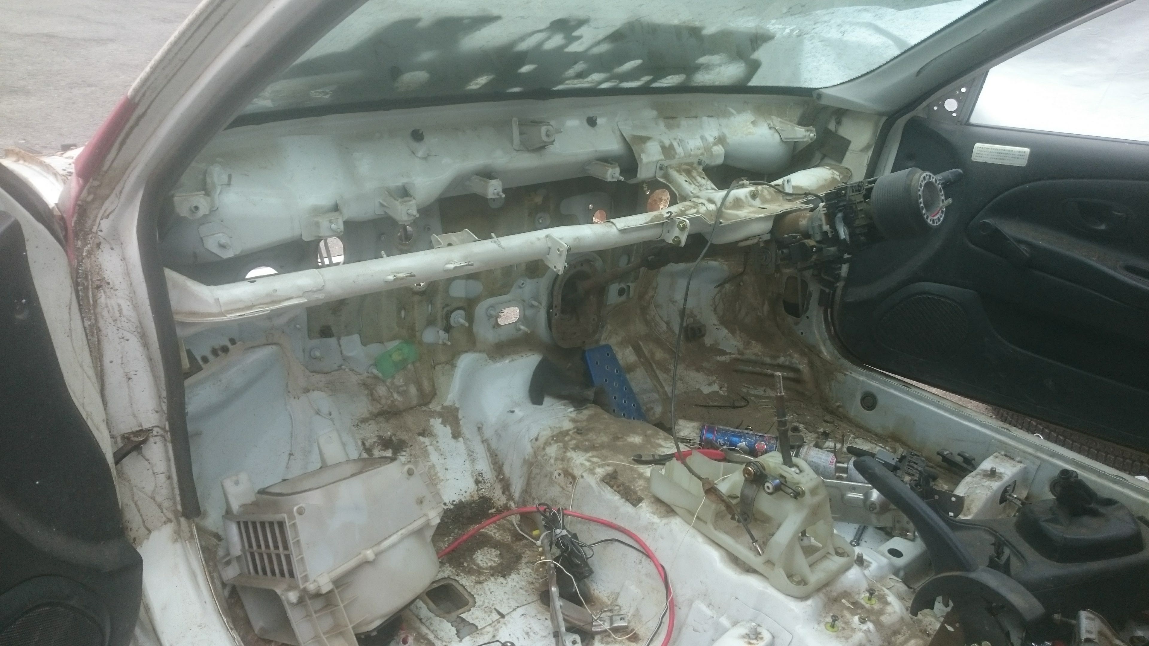 東大さんから箱を引き取ってきてまず車内の清掃をしつつどのレベルまで部品を移植するか考えました。