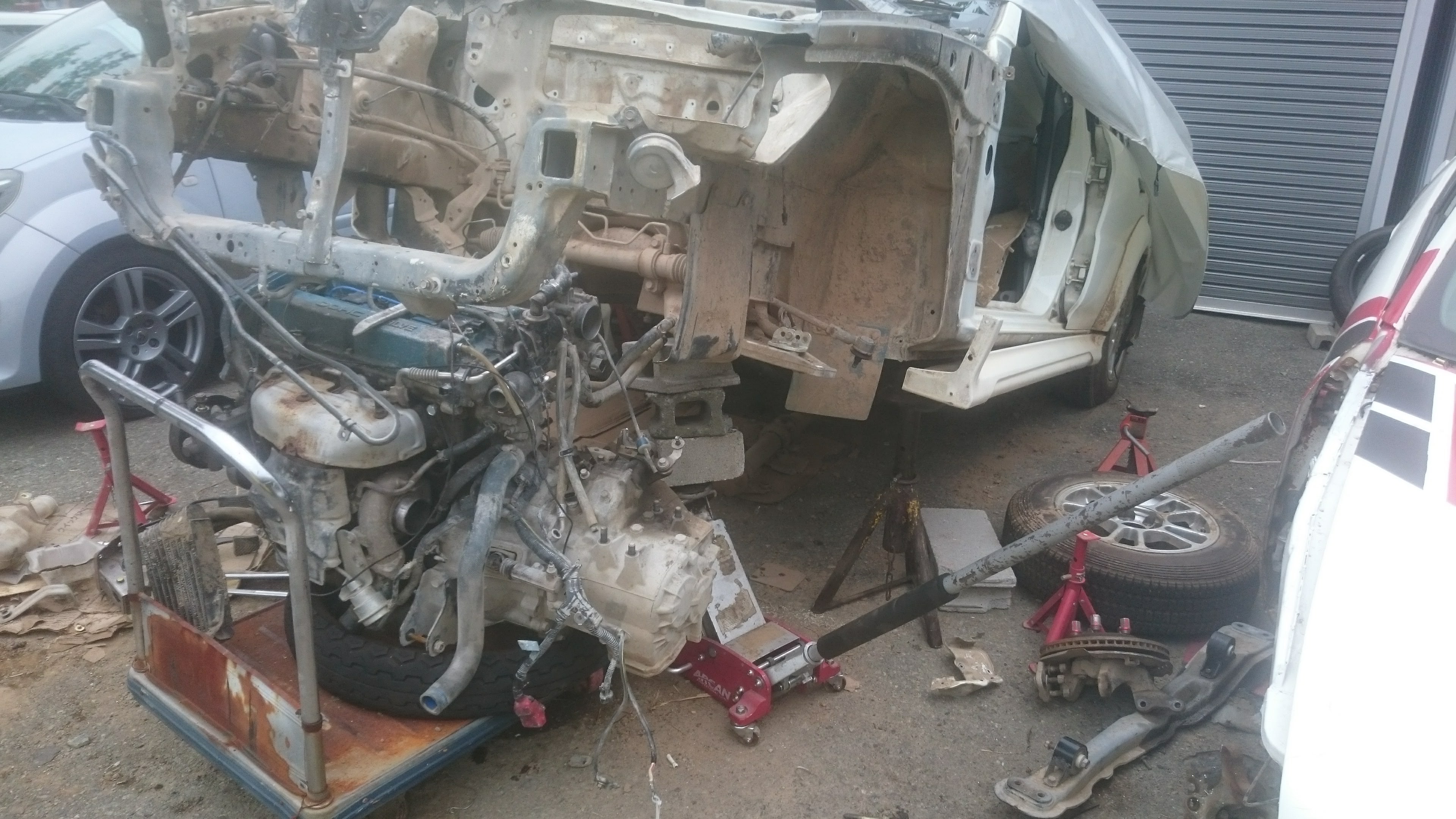 こいつは京大車部の方が所有していた車なのですがクロスミッションが組まれているので、ミッションごと載せ替えてしまって戦闘力アップ&前から欲しかった部品取り車確保作戦です。