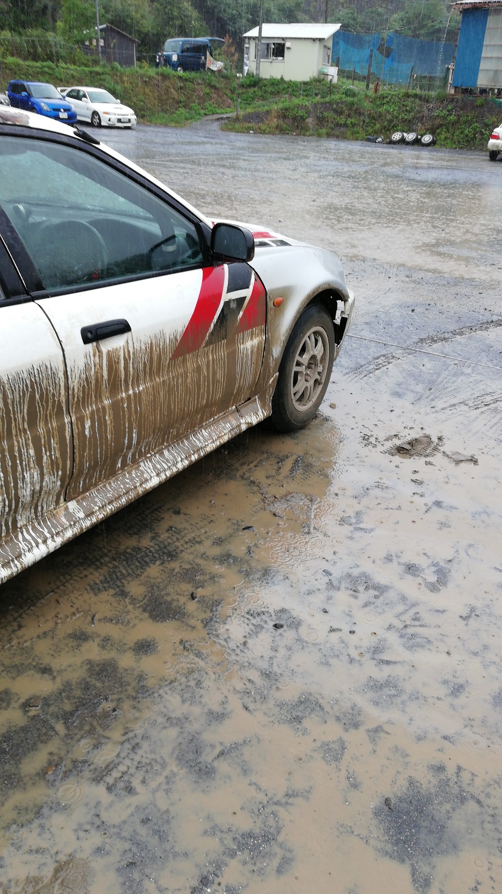 今までダートラは部車のEP91でしかやってこなかったので、あまりのDC2の速さにビクビクしながら午前中は走り、午後になってさぁ車振り回して練習していくぞという矢先に