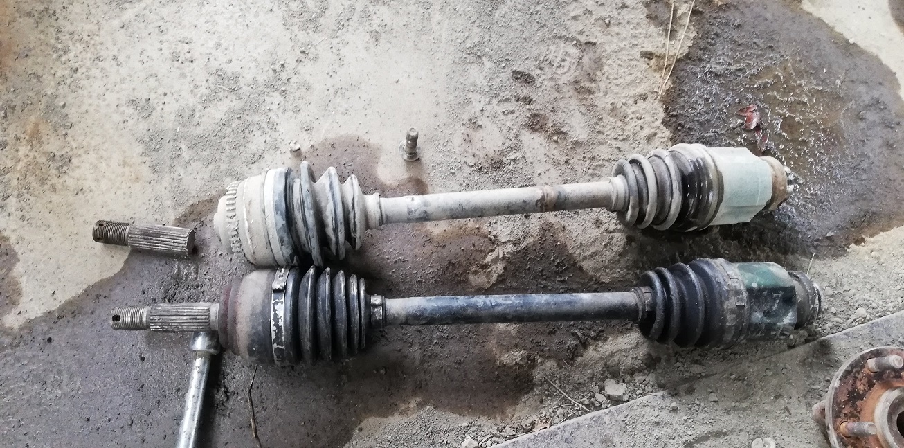 社外の強化品ドラシャみたいですが、スプラインの根本でせん断されるのはこの製品の持病らしいです。ジョイントが強くても千切れてしまっては意味ないので手元にあった純正品に交換しておきました。