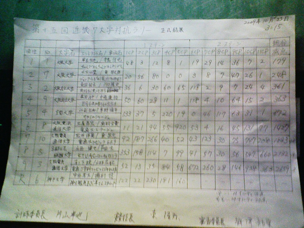 なんとか先日書いた結果が出せました。ワンツーで最高の結果でしょう。来年はラリーが七帝で無いので、あと何回ラリーができるか…
