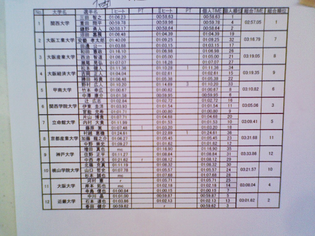 計時のオフィシャルに出していた一年生の話によると、岸本と僕は個人入賞、団体も準優勝だったようです。二年の河村もいい走りをしていました。応援して下さった方々申し訳ありません。