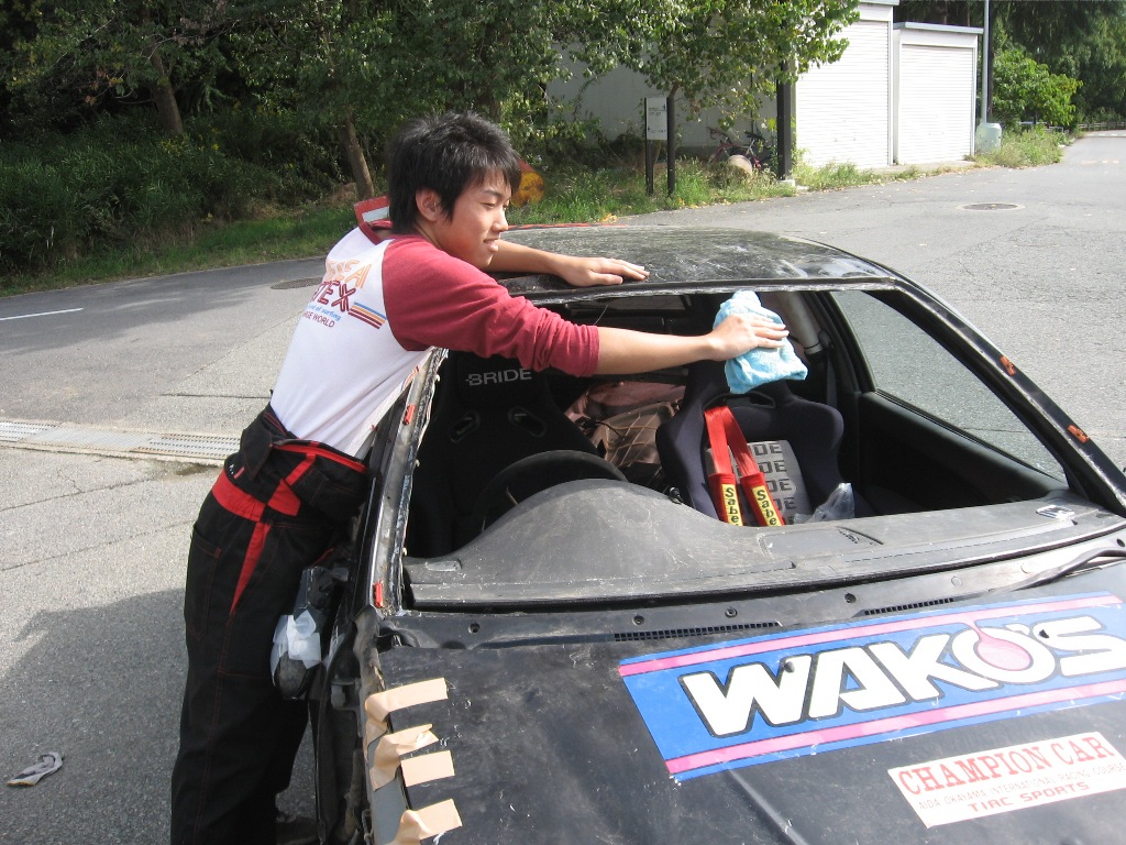 。しかしあれはやりすぎである(少し前のひどい写真です。)「あのコーナーまでノーブレーキだった。いけると思った。」出たよ… その後がんばってきれいなCJをゲットするものの、保険代の高さに苦労しタイヤは0分山DNAグランプリ。ただそれでも練習は絶対に欠かさないので、伸びている。車きれいやのに早いやつ、ってむかつきますよね?まじめでおとなしいという印象はそろそろ薄れ、行動が徐々にやんちゃになっているのが面白い。今までのあだ名は「お父さん」だったらしい…コソ練はやめてさそってね♪