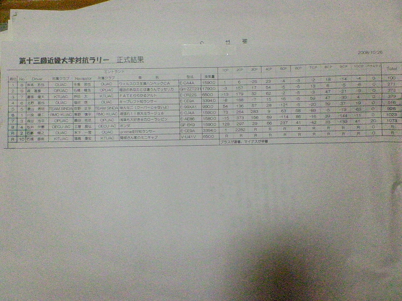 さて、先日行われた近畿七大学対抗ラリーのリザルトだ。