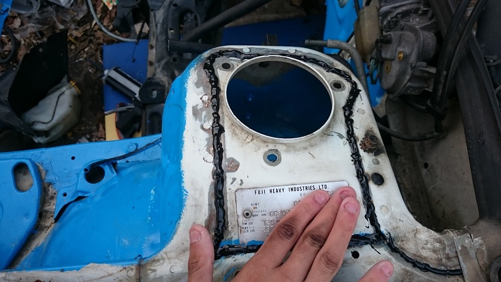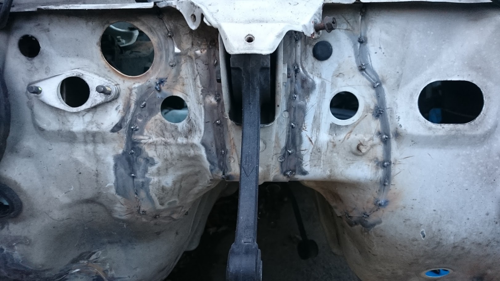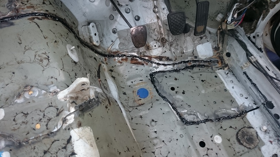 って感じです。自動車部には溶接ができる道具がそろっていますので、なんと自分で車を溶接補強することができるんです。実際こんな感じです。
