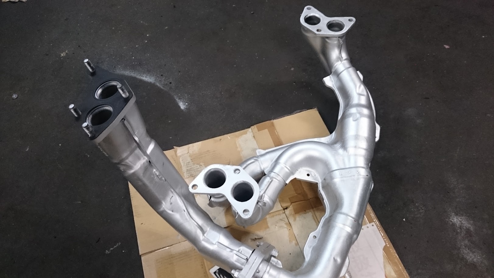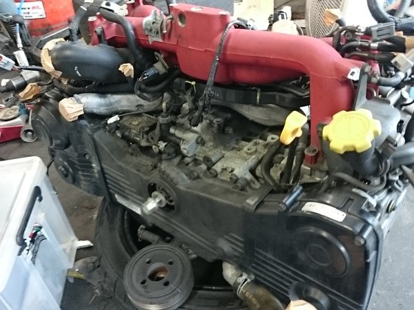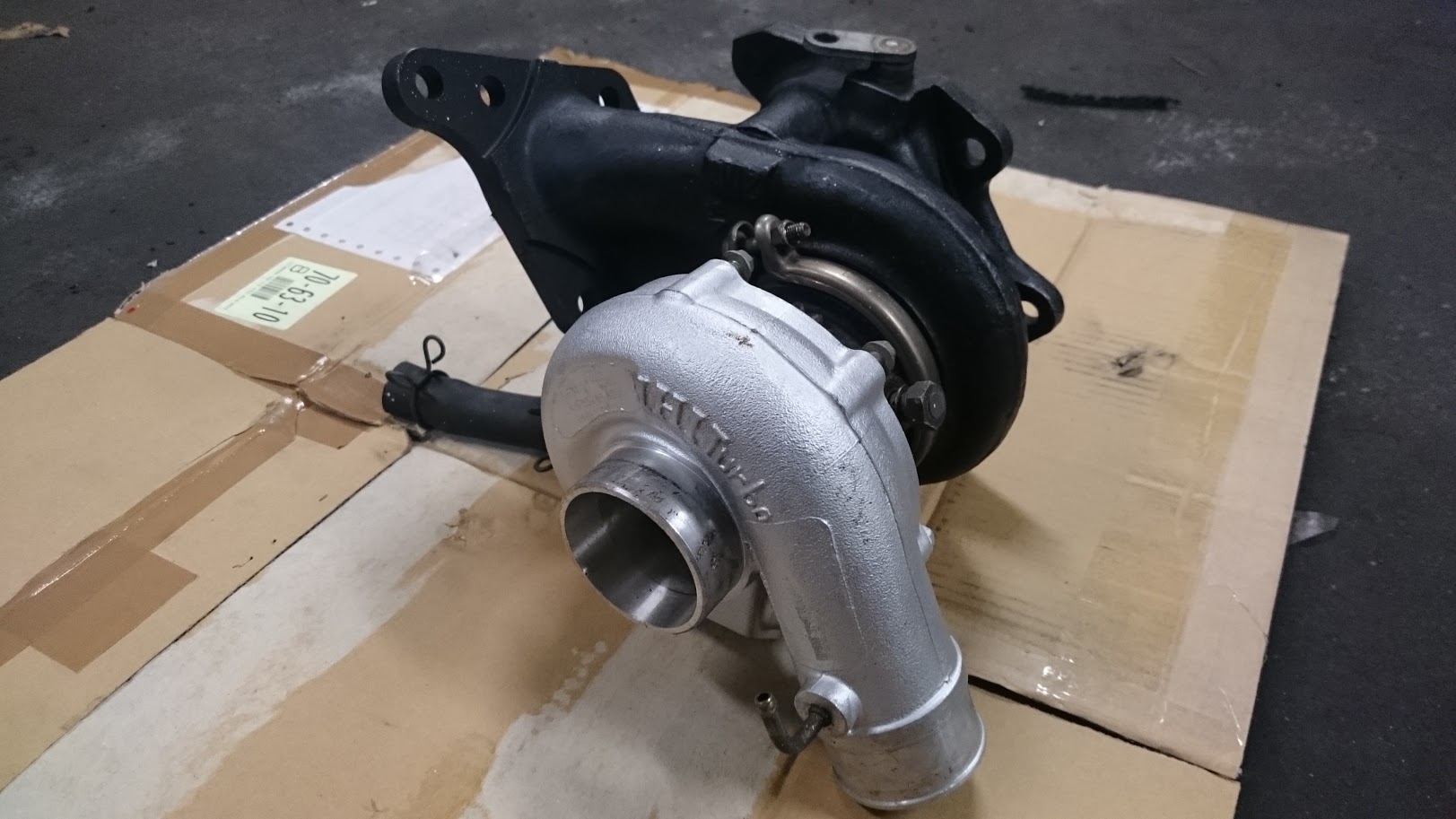 インプレッサは(ざっくりと)ハーネスをひいてみて、さてエンジンを積むぞって段階にきました。そんなタイミングでちょっとばかし加工に出していた排気系の部品が納品されたのでエンジンにエキマニとタービンを取り付けて搭載しようと思います。
