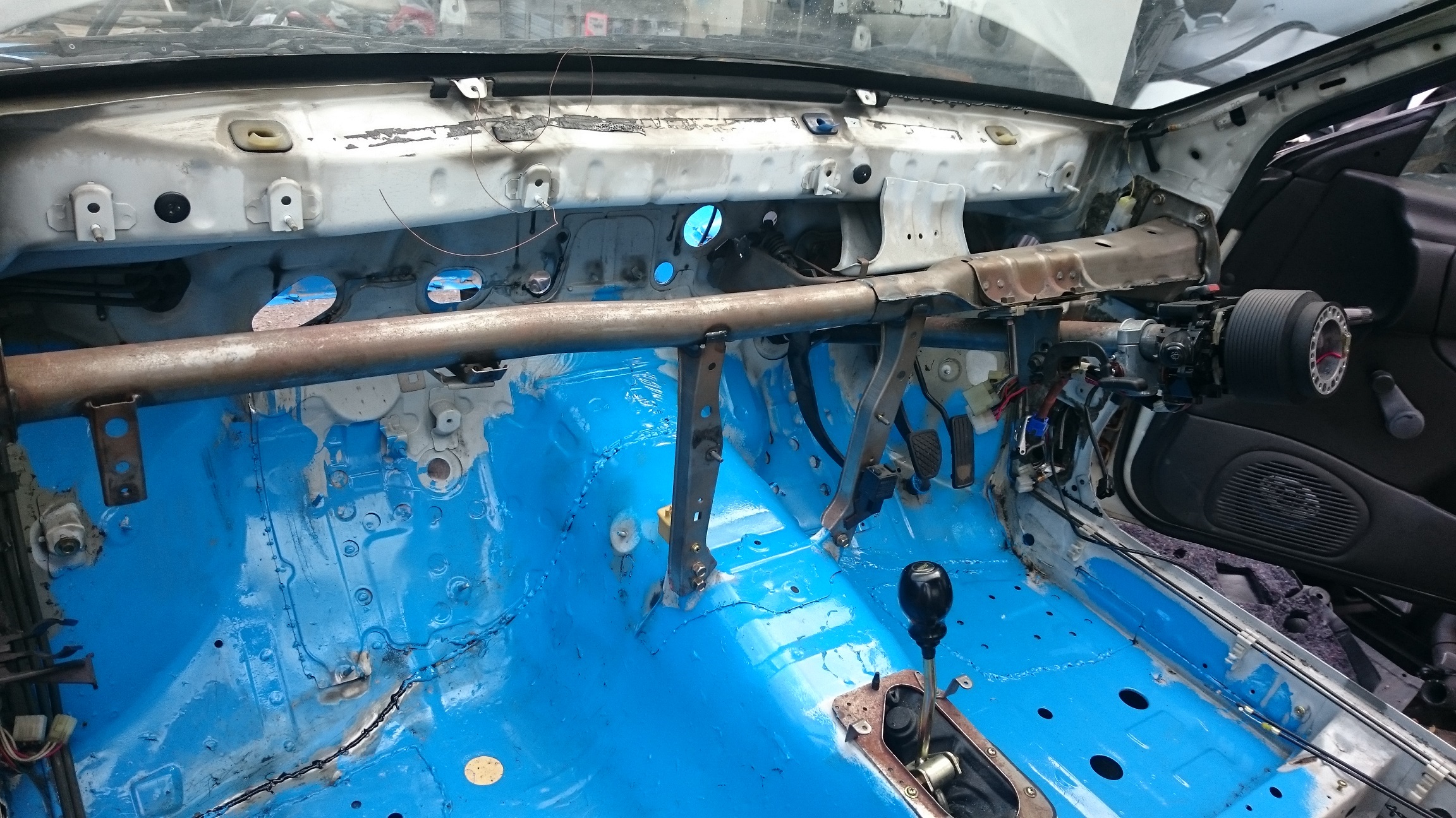 今のところはフロント部分のボディ補強(溶接+パネルボンド)をある程度終え、ハーネスをひいてます。