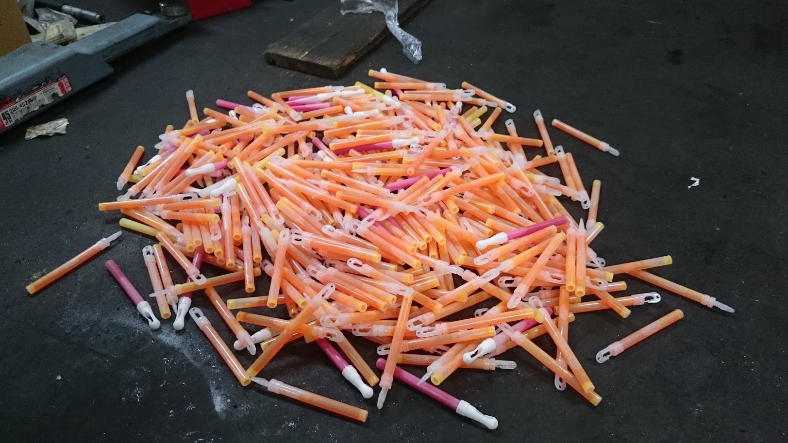 んでもって2日間で使用したサイリウムたち。400本ちょっとくらい使いました、やっぱ電池式よりもケミカルをぽきぽきするほうが楽しい!